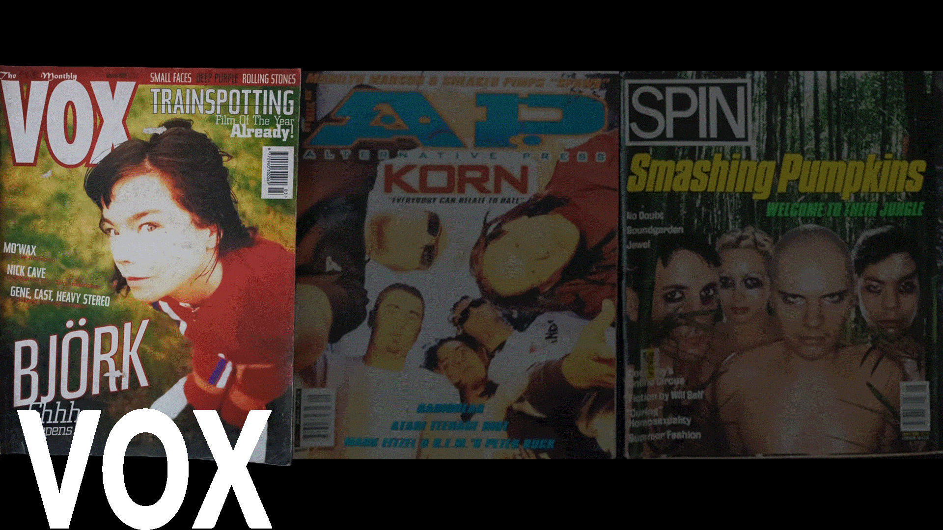 進入90年代沒多久,1991年 Nirvana 平地一聲雷崛起,Grunge 成了潮流,唱片公司不管原創還是跟風,把類似風格的專輯都貼上 Alternative Music 的標籤來販賣。離開樂隊作個人發展的 Björk 在1993年也一鳴驚人,同一年英國傳媒炮製了 Britpop 這個字眼來對抗美國的 Grunge,霎時間樂壇風起雲湧好不熱鬧。這個時期是我購買音樂雜誌的巔峰,因為除了文藝雜誌,我開始定期替報章寫專欄,大量介紹另類音樂,那些國外進口的音樂雜誌成了我的參考書,相等於我那個年代的「谷歌」和「維基」。除了 NME 和 Melody Maker,我當時在市面上買得到的雜誌包括英國出版的月刊 SELECT、VOX、Q 和周刊 Kerrang!、美國出版的月刊 Alternative Press 和 Spin、托朋友帶回的香港《音樂殖民地》雙周刊、以及只買到兩期的中國《摩登天空》月刊,這就是我每個月的精神糧食。