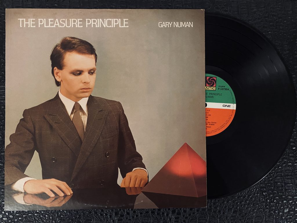 這張 LP《The Pleasure Principle》是在一九七九年錄的,十首歌不超過四十五分鐘,每首歌名只有一個單字,有型有格又乾淨俐落。封套上的 Gary Numan 官仔骨骨,穿上棕色格紋的筆挺西裝,白色扣領襯衫,細長的淺棕色領帶,卻畫上黑色眼線和佩上耳環,以亦正亦邪的形象示人。